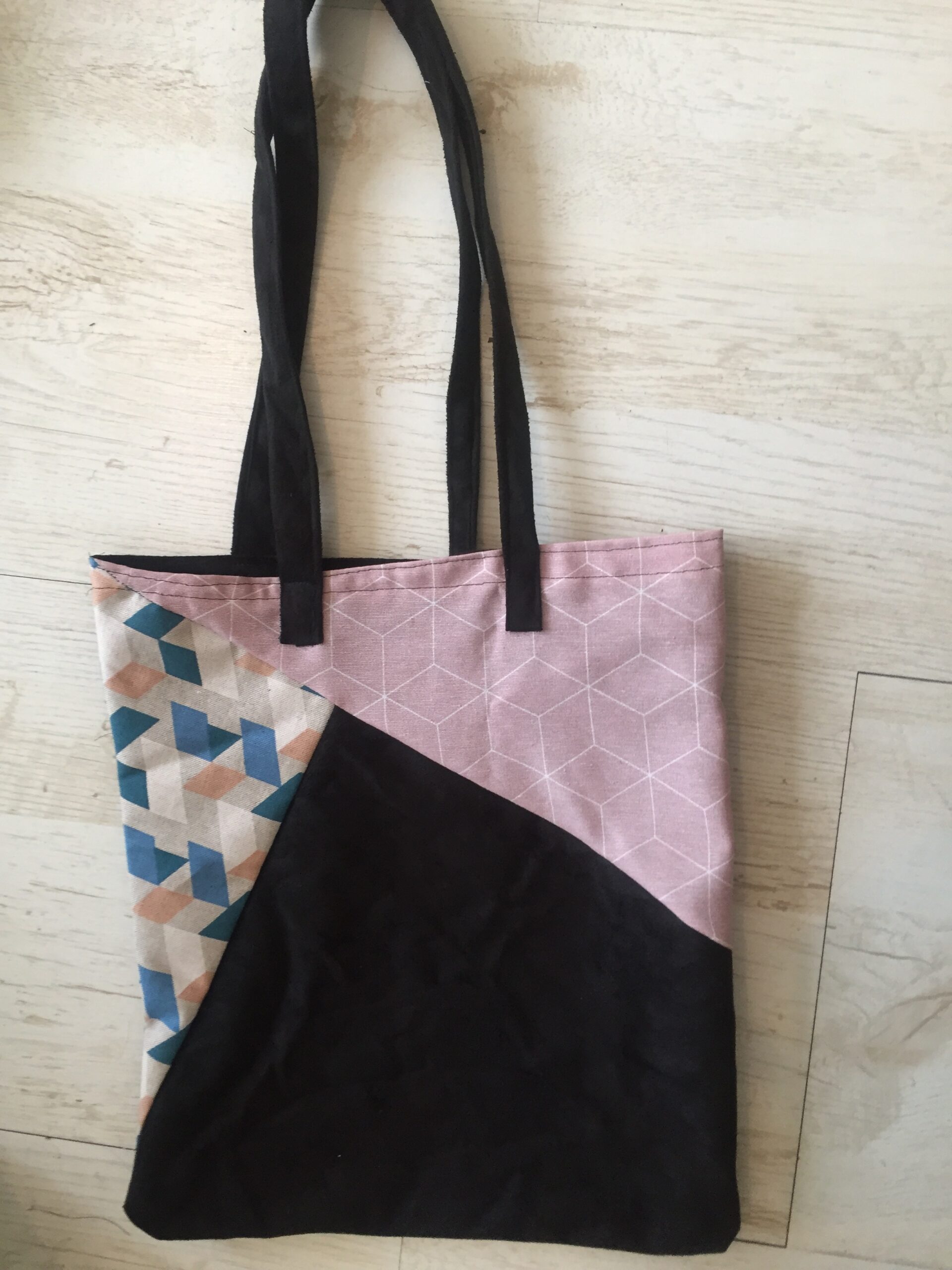 Voor deze serie combineer ik allerlei restjes stof die nog lagen te wachten. Verschillende kleuren, verschillende texturen — alles mag naast elkaar bestaan. Juist dat maakt elke tas uniek.